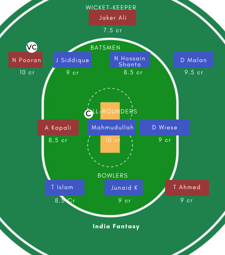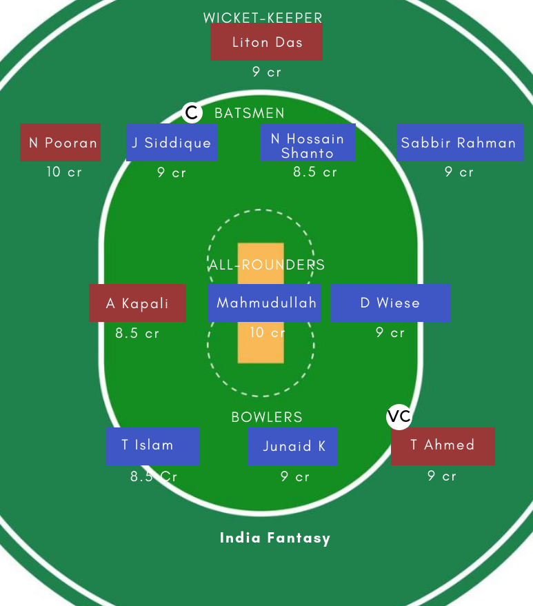 Batsmen- Nicholas Pooran, Liton Das, Sabbir Rahman, Alok Kapali (Andre Fletcher)