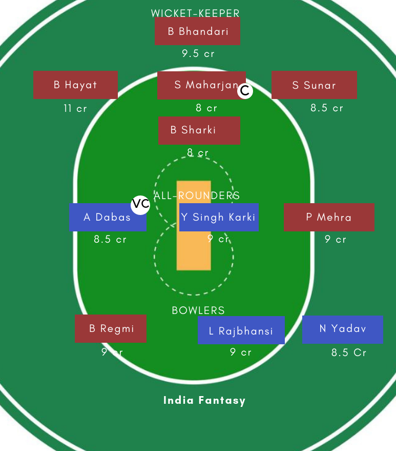 Batsmen: B Bhandari, Babar Hayat, S Sunar, S Maharjan, B Sharki,