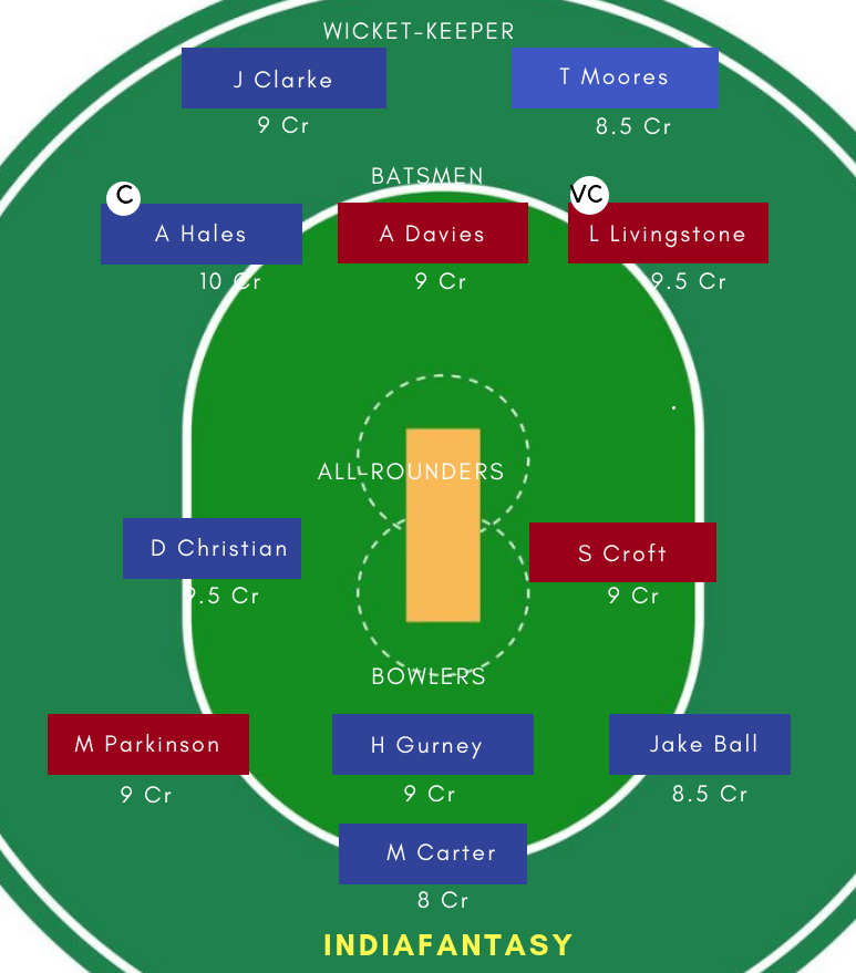 Tom Moores, Alex Hales, J Clarke and Ben Duckett are the key batters in the side