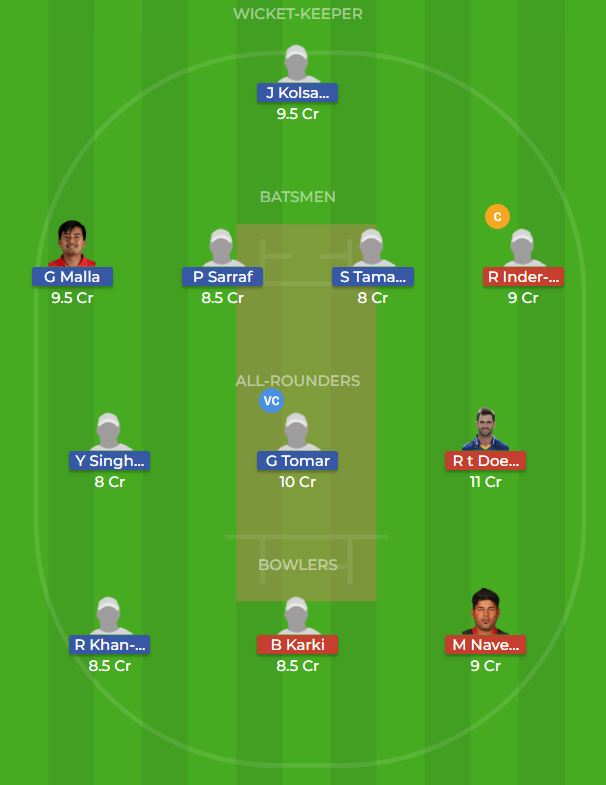 Batsmen – R Inder Singh, Ryan ten Doeschate, Aarif Sheikh (Doubt: H Shah, RK Paudel)
