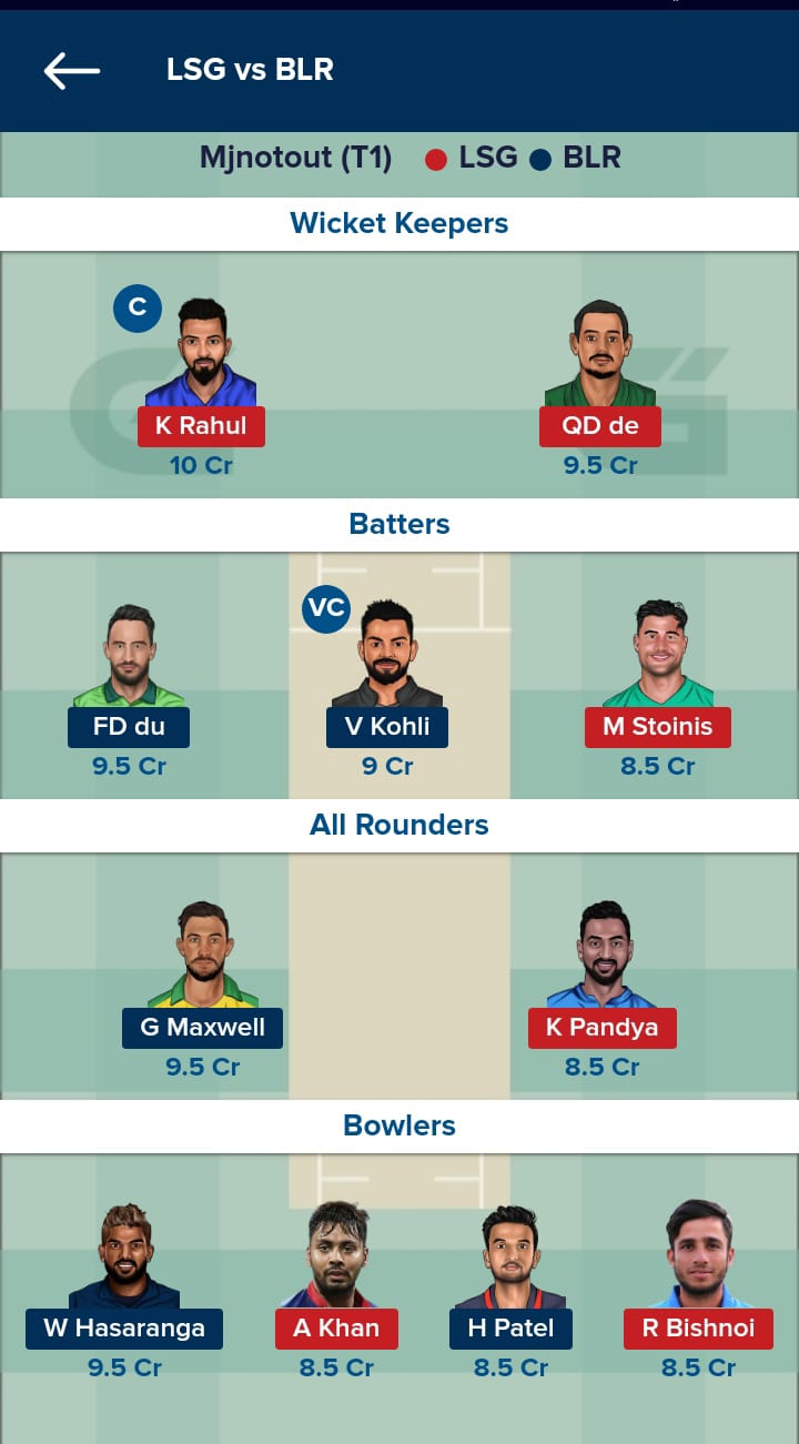 LSG vs RCB Dream11 Prediction Captain & Vice Captain Choices