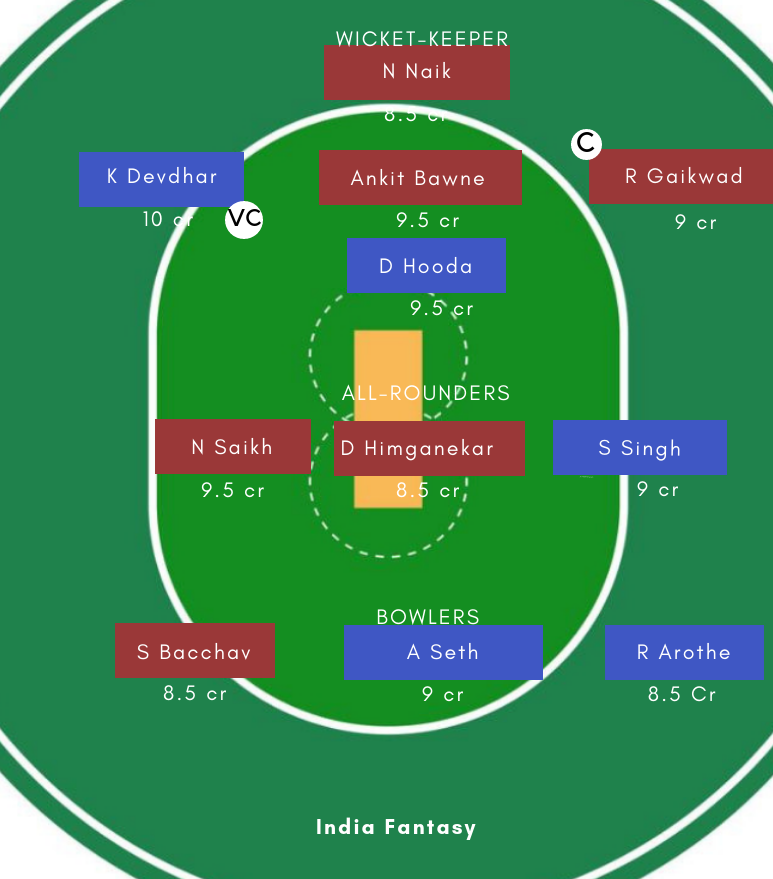 Batsmen- Ankit Bawne, Rahul Tripathi (c), Vijay Zol, Ruturaj Gaikwad,
