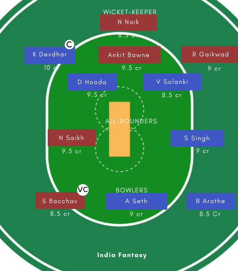 Batsmen- Kedar Devdhar (c), Vishnu Solanki, Deepak Hooda,
