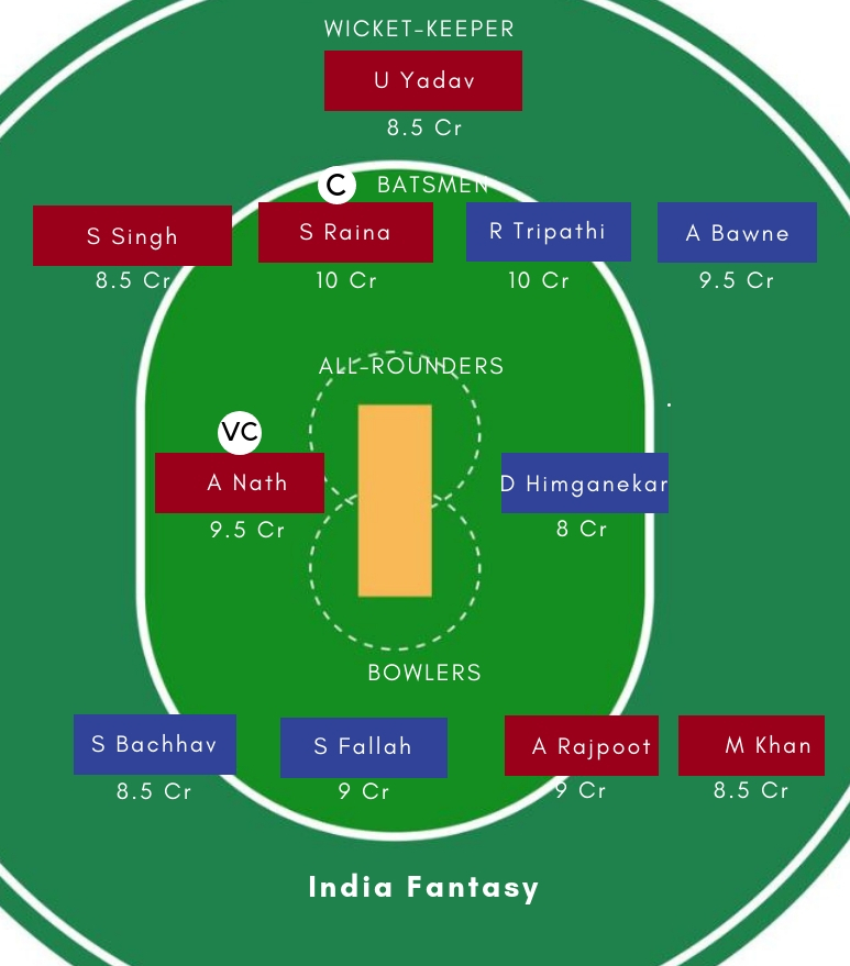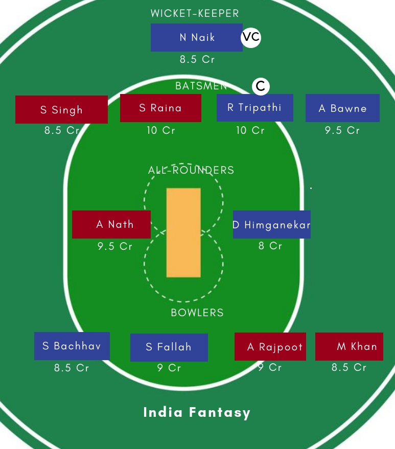 Uttar Pradesh – Samarth, Upendra(WK), Raina, Nath, Garg, Rinku, Saurabh, Shiva, Ankit, Mohsin and Yash Dayal/Mohit Jangra