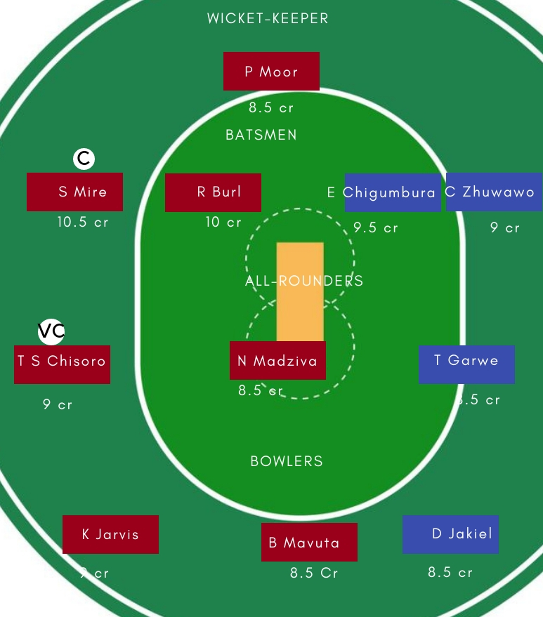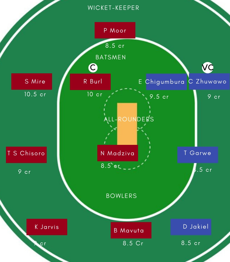 ऑलराउंडर : T Garwe ने छह विकेट चटकाए हैं. TS Chisoro और N Madziva को लिया जा सकता है.