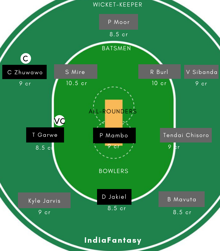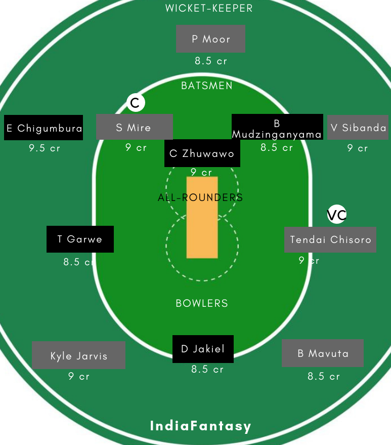 V Sibanda, AJ Moor, B Mavuta, N Madziva, RP Burl, SF Mire, CT Mumba, PJ Moor, TS Chisoro, PS Masvaure, MT Chinouya, KM Jarvis