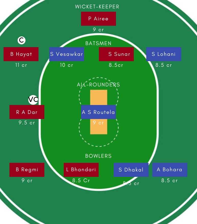 गेदबाज – S Dhakal, A Bohara,(Doubt : S Alam,S Bhatta)