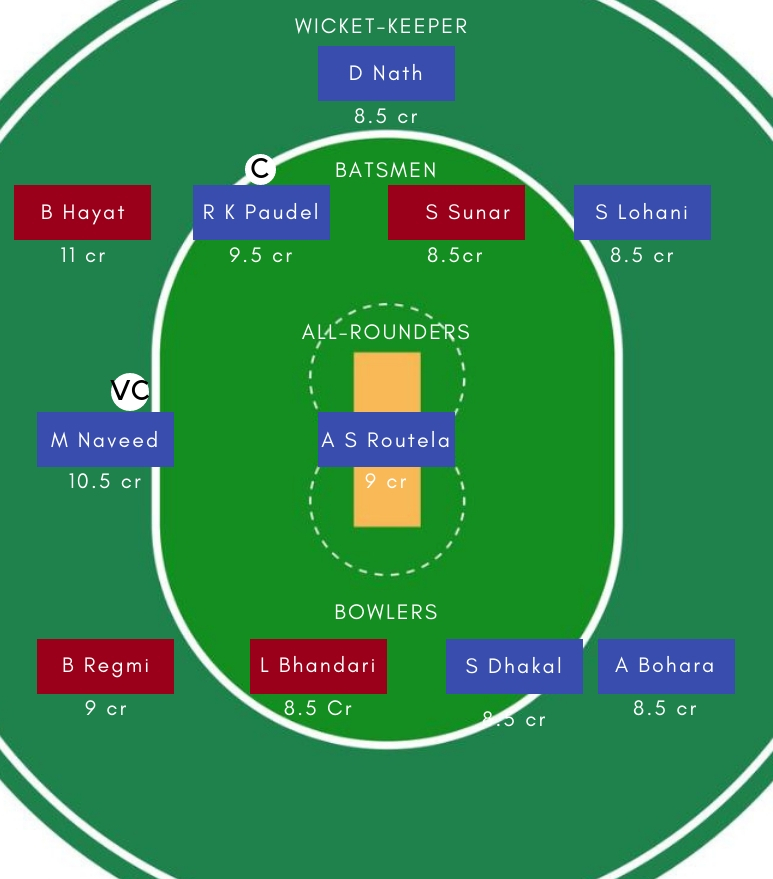 Mahendranagar United के लिए इस मैच में Mohammad Naveed, Rohit Kumar Paudel, Sharad Vesawkar, Amar Singh Rautela अहम खिलाड़ी साबित हो सकते है। Mohammad Naveed अपनी शानदार गेंदबाजी से किसी भी बल्लेबाजी क्रम को ध्वस्त कर सकते है। वही, Rohit ने हाल ही में यूएई के खिलाफ अच्छी पारी खेली थी।