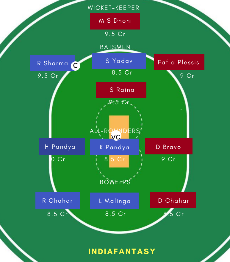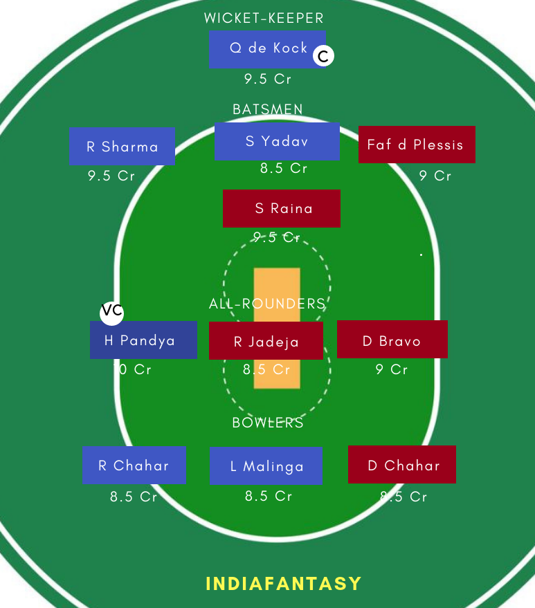Batsmen –Rohit Sharma (c), Kieron Pollard, Suryakumar Yadav, Ishan Kishan