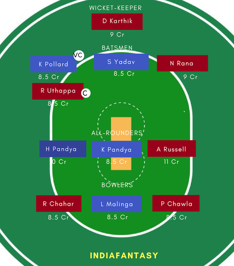 Mumbai Indians have an upper hand over Kolkata Knight Riders in head to head clashes. Also, at Wankhede Stadium the hosts have turned out victorious in seven out of eight outings. So, clearly, MI are the favourites with home advantage.