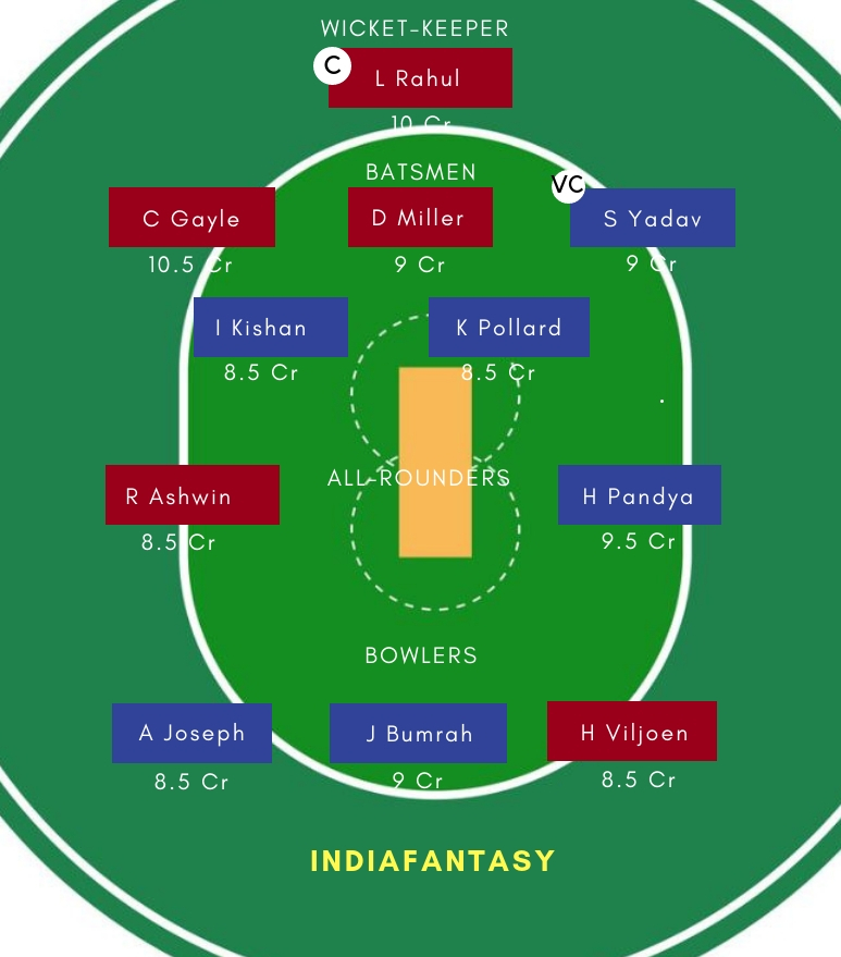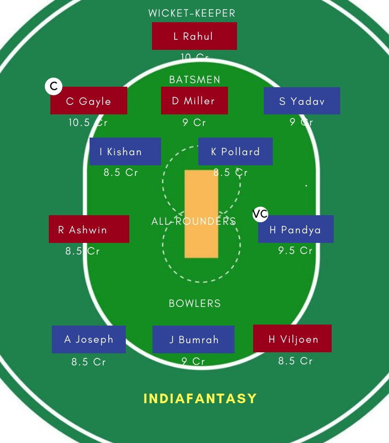 MI vs KXIP Dream11 Team