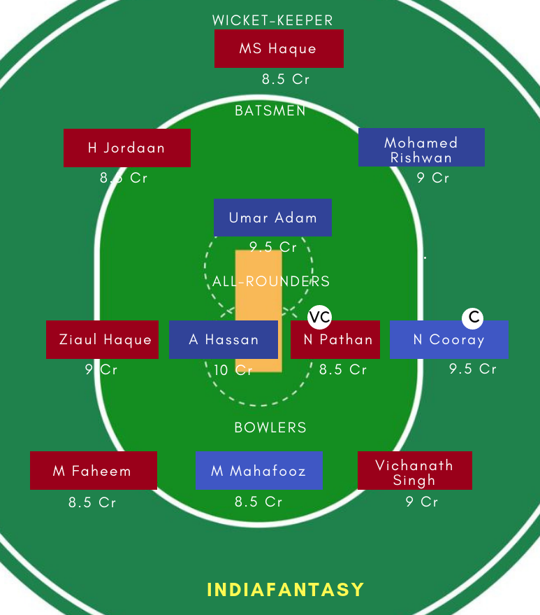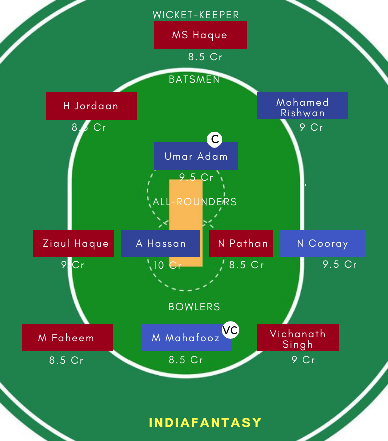 Umar Adam and Mohammed Mahfooz share 5 wickets each and are the key wicket-takers in the side
