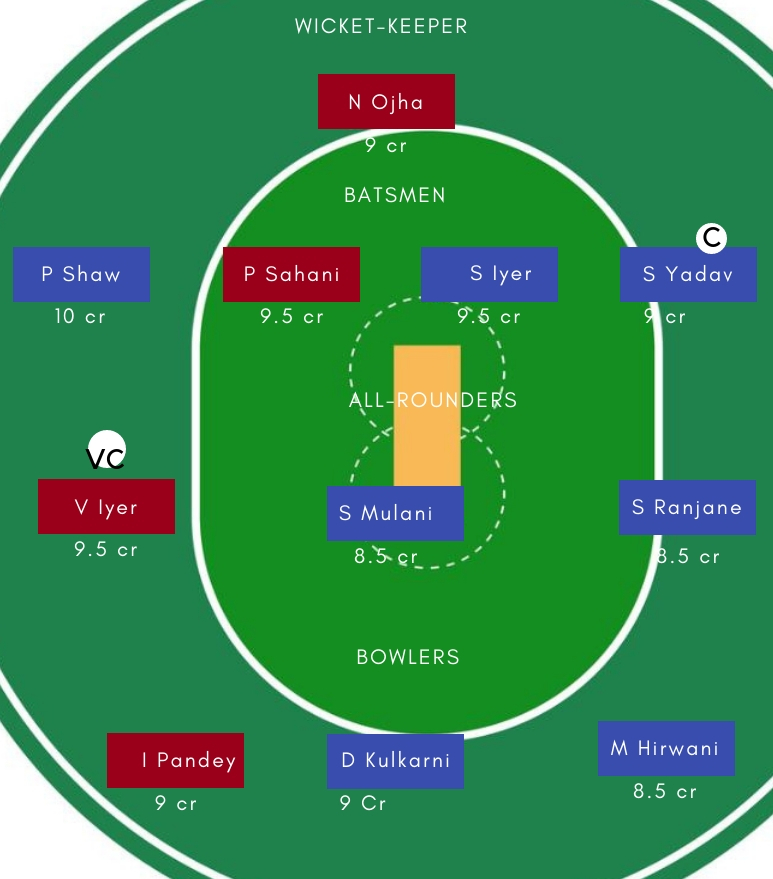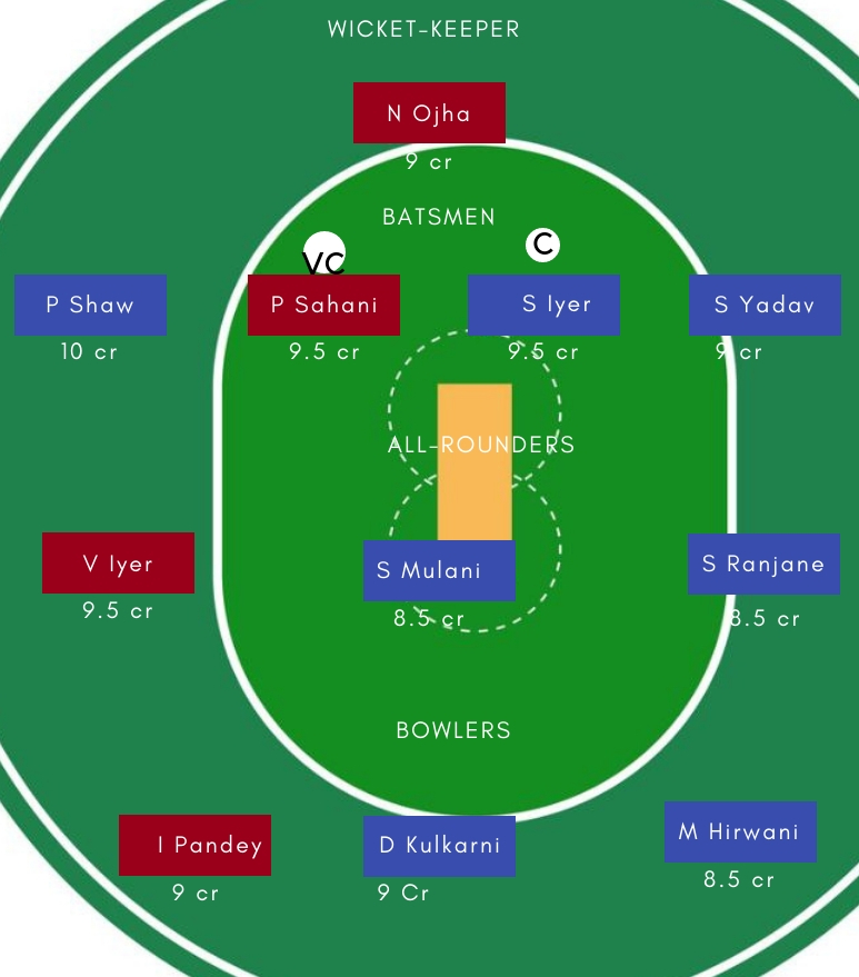 बल्लेबाज : P Shaw, S Lad, A Rahane (c), S Iyer, S Yadav
