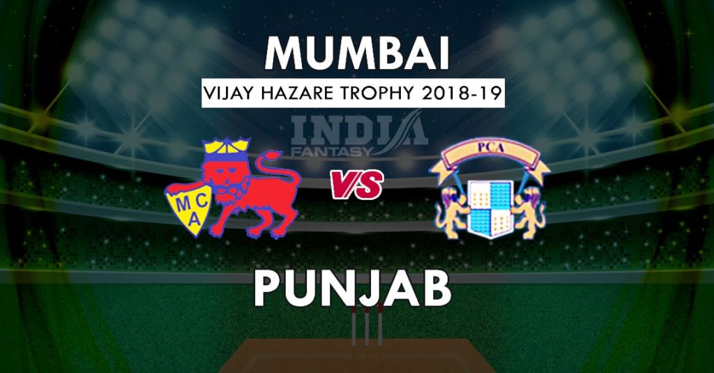 विजय हज़ारे ट्रॉफी 2018 के ग्रुप A की दो टीमें शुक्रवार, 28 सितंबर को बेंगलोर के Just Cricket एकेडमी ग्राउंड पर मुकाबले के लिए उतरेगी। इस मुकाबले में उतर रही टीम Mumbai और Punjab है। दोनो टीम बेहतरीन फॉर्म मे है और दोनो ही टीमों के पास कई स्तरीय खिलाड़ी मौजूद हैं ऐसे में दो बड़ी टीमों के बीच एक कड़ा मुकाबला देखने को मिल सकता है।