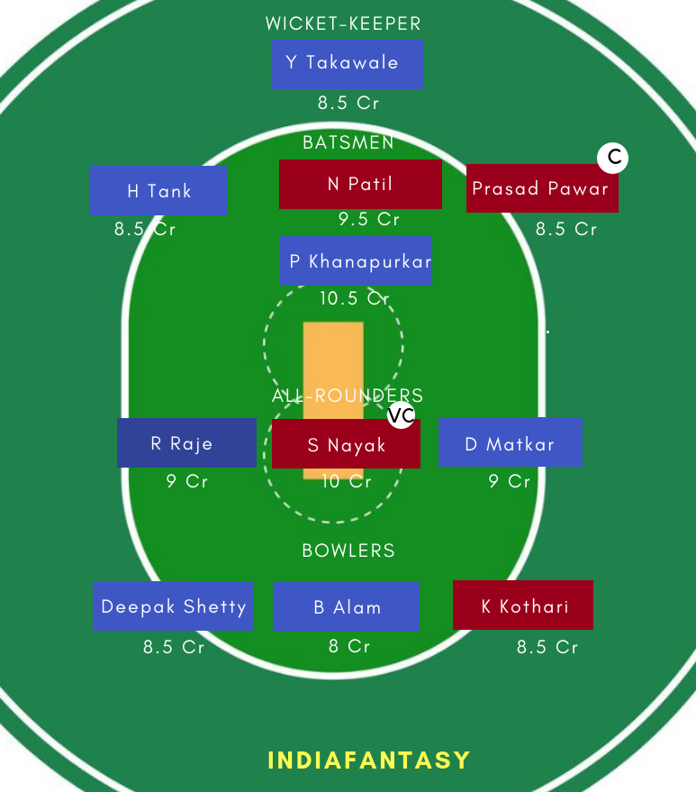 Batsmen: Shreyas Iyer (c), Nikhil Patil, Prasad Pawar, Siddharth Chitnis