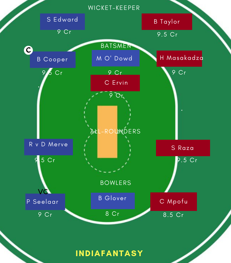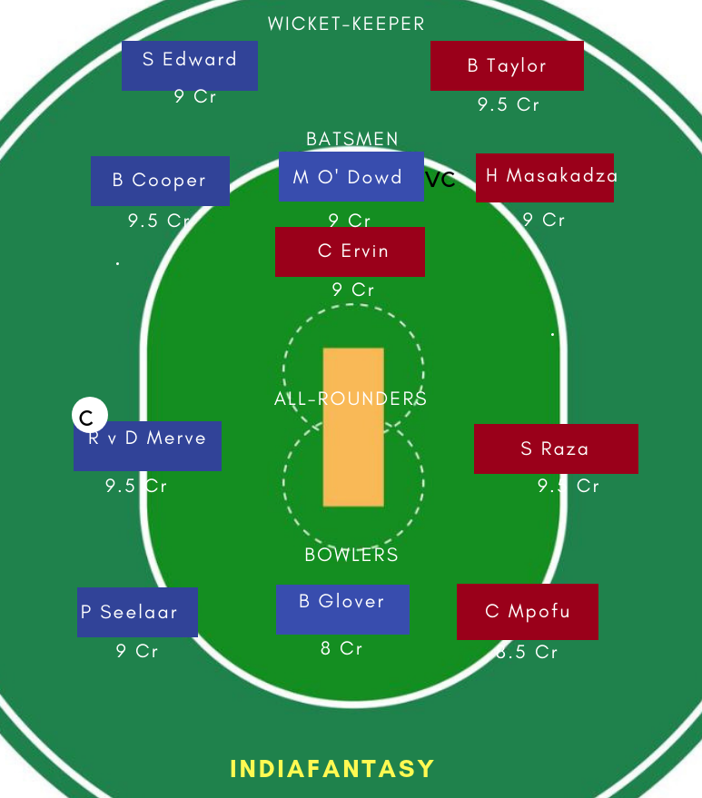 Scott Edwards, Ben Cooper, Brandon Glover, Bas de Leede, Max O’Dowd, Tobias Visee, Pieter Seelaar, Roelof van der Merwe, Paul van Meekeren, Wesley Barresi, Fred Klaassen.