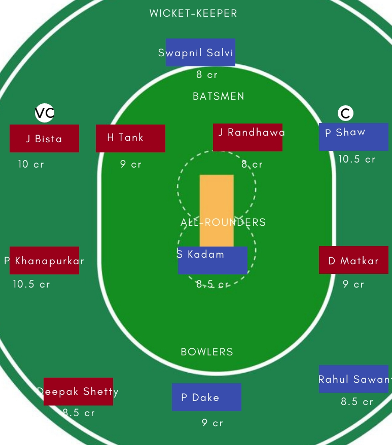 Hersh Tank, Parag Khanapurkar, Khizer Dafedar, Vaibhav Mali, Dhrumil Matkar, Deepak Shetty, Yogesh Takawale , Badrey Alam, Jay Gokul Bista (c), Rohan Raje, Japjeet Randhawa