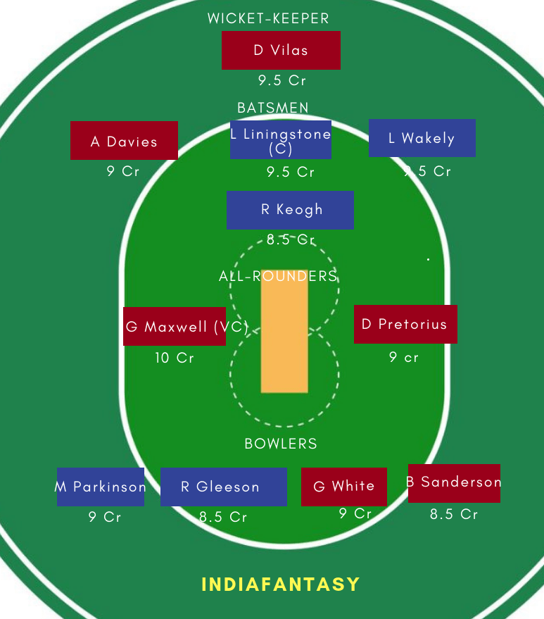 NOR Playing 11: Liam Livingstone, Alex Davies, Steven Croft, Glenn Maxwell, Dane Vilas (C), Josh Bohannon, Keaton Jennings, James Faulkner, Saqib Mahmood, Richard Gleeson, Matt Parkinson.