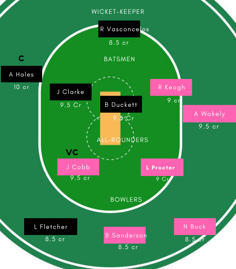 बल्लेबाज : A Hales ड्रग्स की वजह से इंग्लैंड टीम से बाहर हो चुके हैं. हेल्स निराश जरूर हैं. लेकिन, बहुत बड़े हिटर हैं. और घरेलू क्रिकेट में एलेक्स हेल्स का कोई जवाब नहीं है. इसलिए, हम एलेक्स हेल्स को कप्तान बनाना चाहेंगे.
