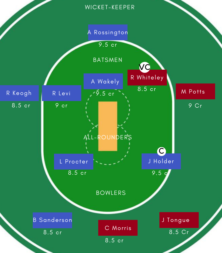 Richard Levi, Joshua Cobb, Ben Sanderson, Alex Wakely (c), Luke Procter, Adam Rossington (wk), Rob Keogh, Jason Holder, Saif Zaib, Ricardo Vasconcelos, Blessing Muzarabani