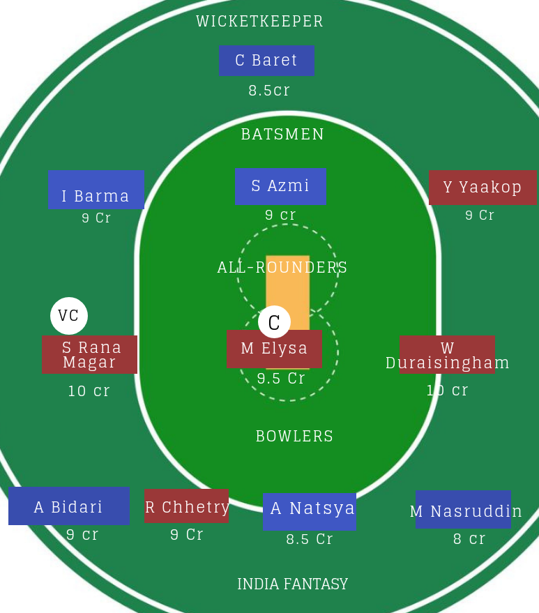 ऑलराउंडर : M Elysa ने कुवैत के खिलाफ 33 रन बनाए और तीन विकेट भी उन्होंने चटकाए थे. जबकि S Rana Magar और N Thapa नेपाल की बेहतरीन खिलाड़ियों में शुमार की जाती हैं.