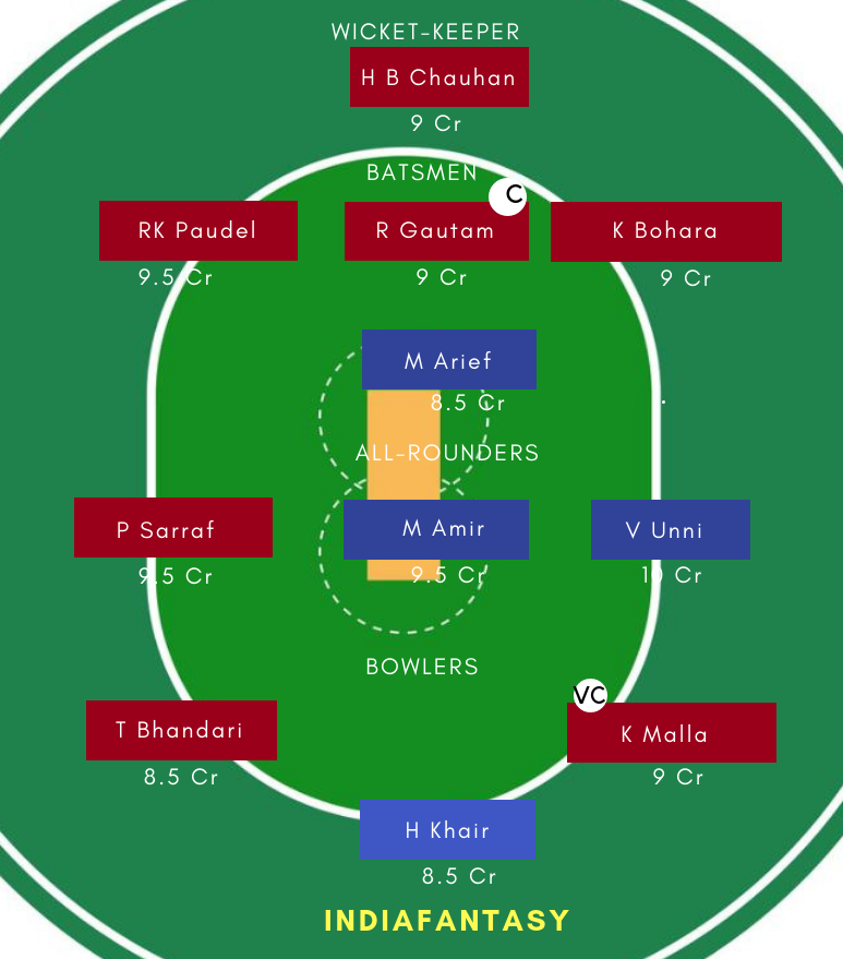KC Bikram, L Bam, K Singh Airee, S Dhakal, K Malla, Rohit Kumar Paudel, R Gautam, K Bohara, B Sharki, Pawan Sarraf, HB Chauhan, R Khan Jr, T Bhandari, Partis GC