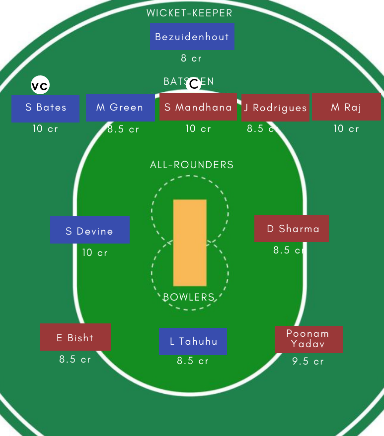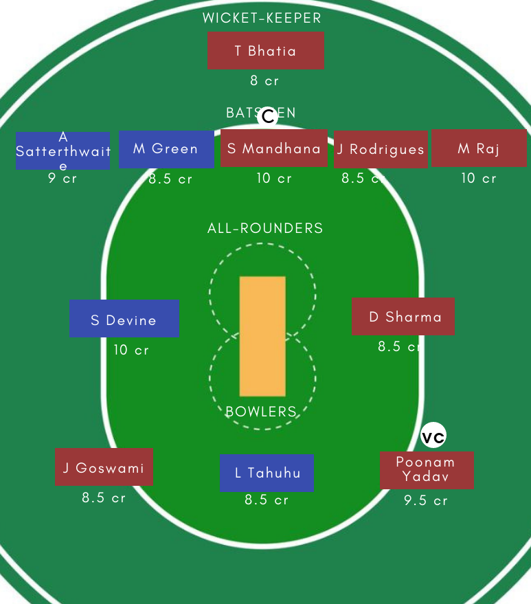 Batswomen: Mithali Raj (c), Smriti Mandhana, Jemimah Rodrigues, Harmanpreet Kaur