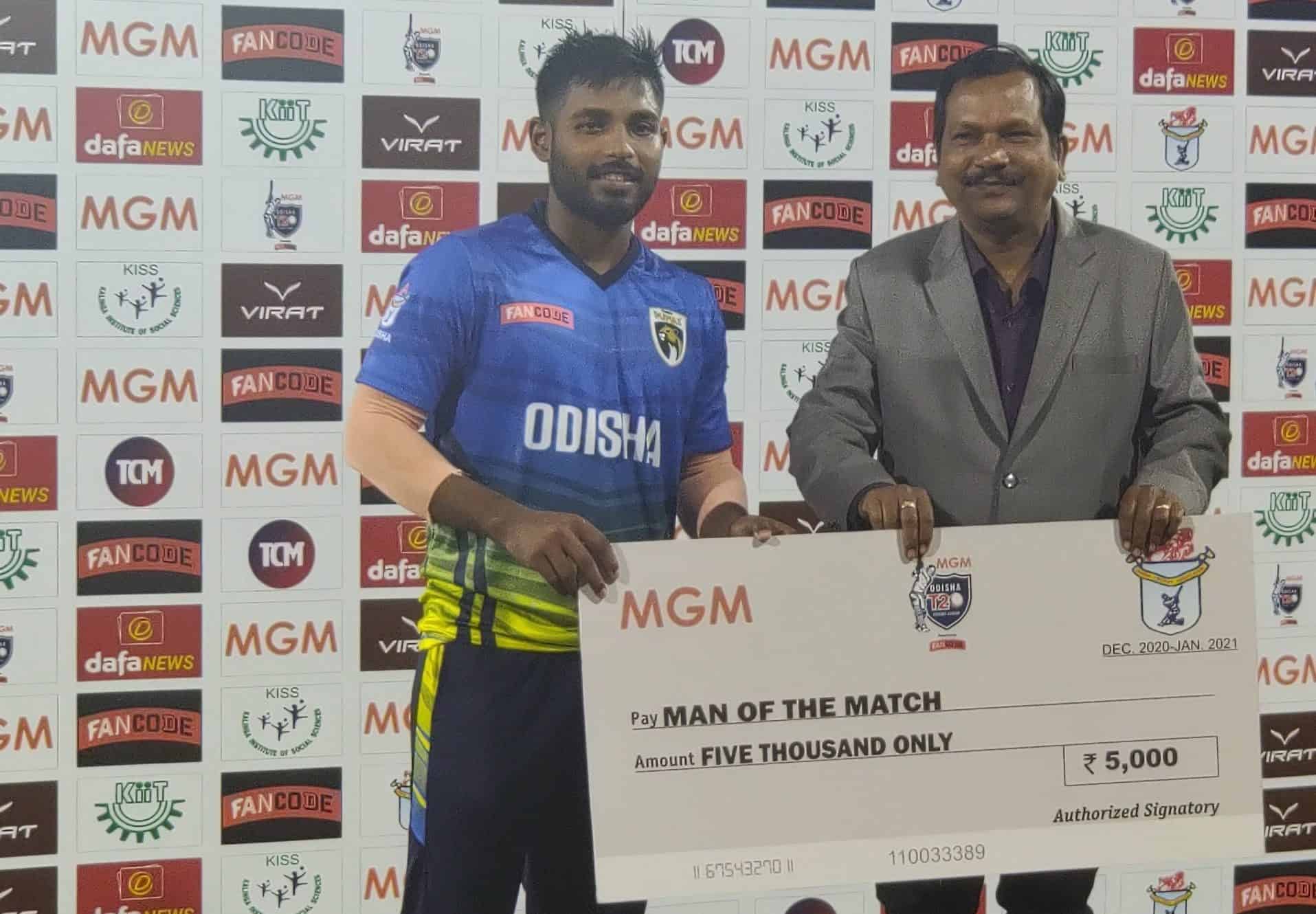 Tukuna Sahoo – he did really well in the last game and added much needed momentum to his team’s performance. He scored 40 of 30 balls