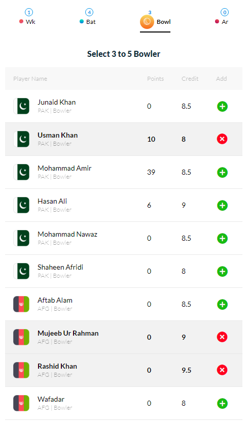 In bowling, Rashid Khan, Mujeeb ur Rahman and Usman Khan are a must have options.
