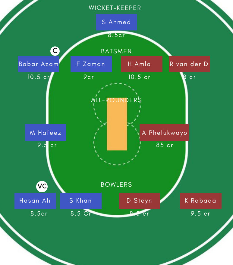 Batsmen – Babar Azam, Shoaib Malik, Imam-ul-Haq, F Zaman