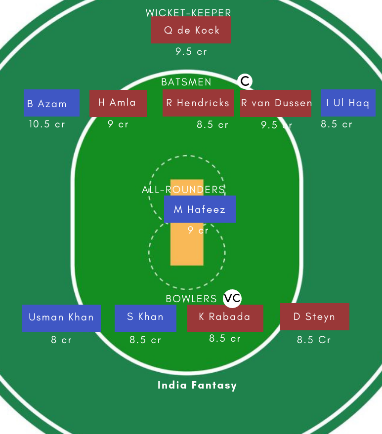Batsmen – Faf du Plessis (c), Reeza Hendricks, D MiIler, Rassie van der Dussen, H Amla