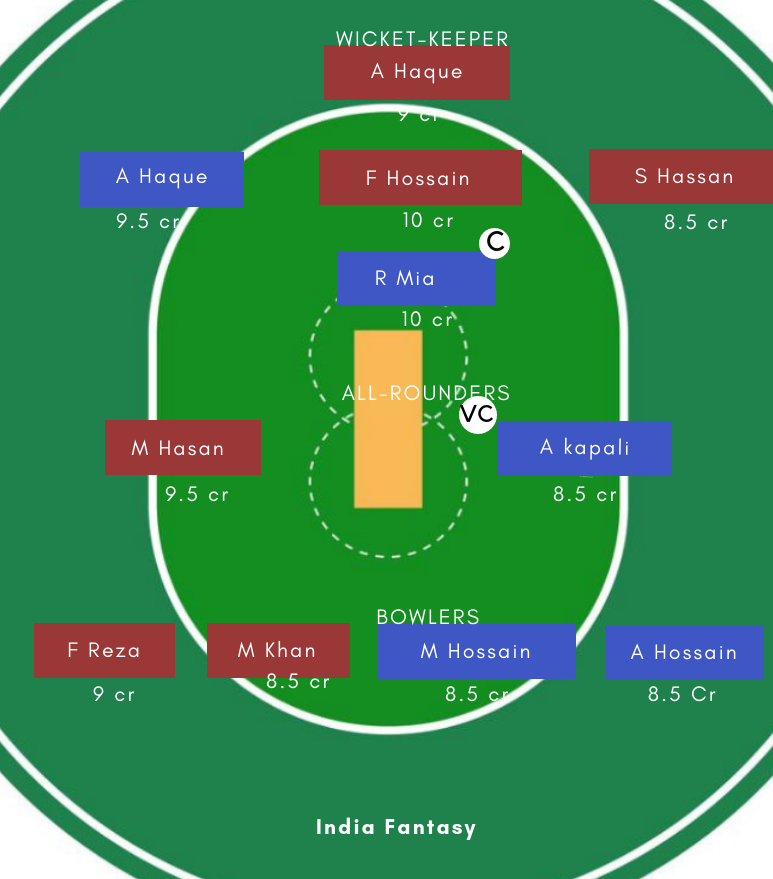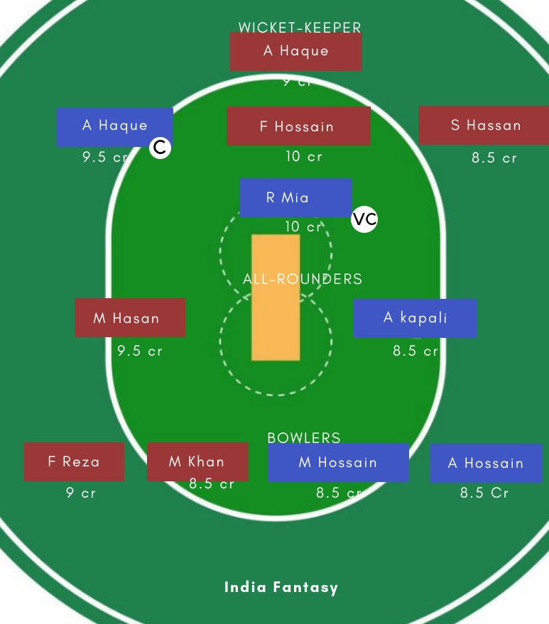 Batsmen: Nazmul Hossain Milon, Ariful Haque, Zakir Hasan, Rubel Mia
