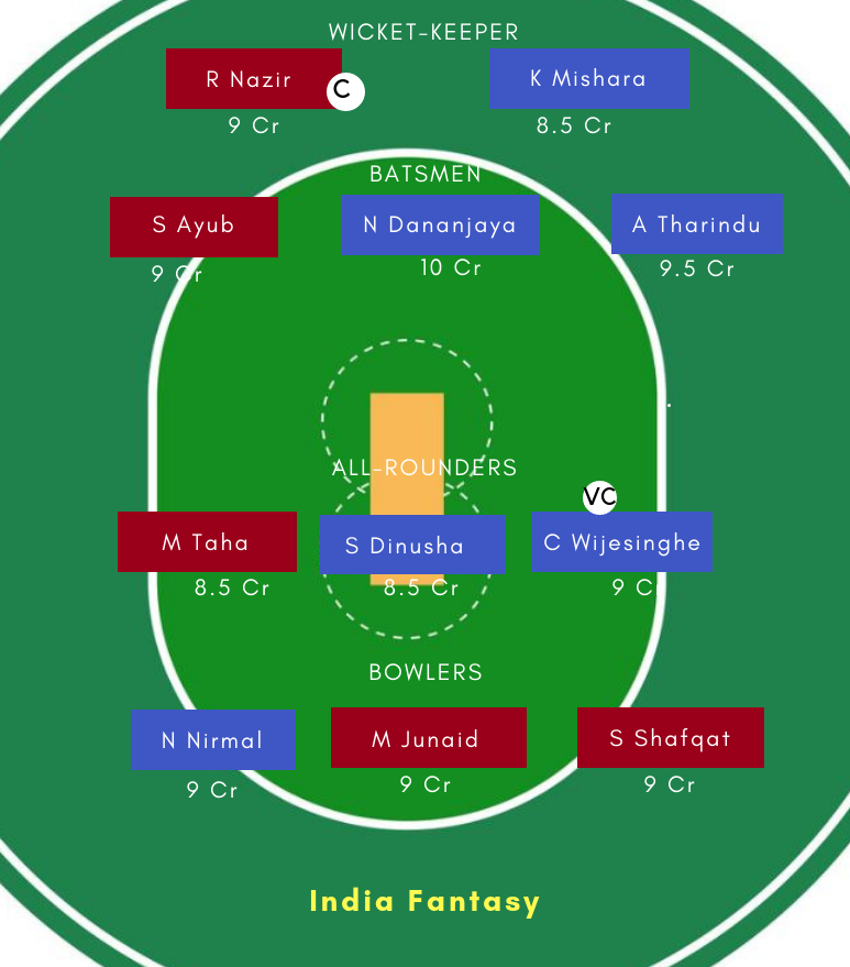 Batsmen: N Dananjaya, A Tharindu, P Rathnayake, M Shamaz