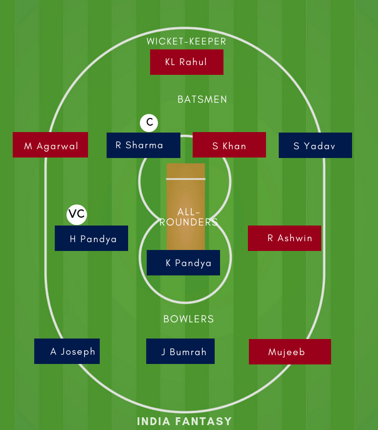 Rohit Sharma, Quinton de Kock, Suryakumar Yadav, Ishan Kishan, Krunal Pandya, Kieron Pollard, Hardik Pandya, Rahul Chahar, Alzarri Joseph, Jason Behrendorff, Jasprit Bumrah