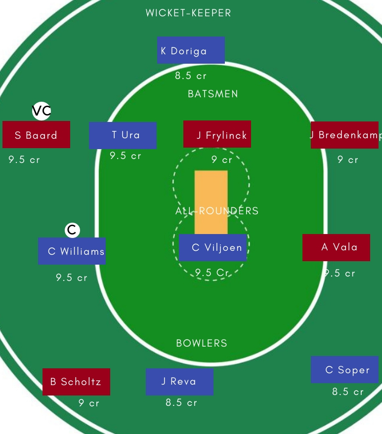 टीम की बल्लेबाजी में जहां S Baard, J Frylinck , Jean Bredankamp के रुप में अच्छे बल्लेबाज मौजूद है। वही, Craig Wiliams और Christi Viljoen के रुप में टीम के पास दमदार ऑलराउंडर मौजूद है। जो किसी भी मैच का रुख पलटने का दम रखते है।