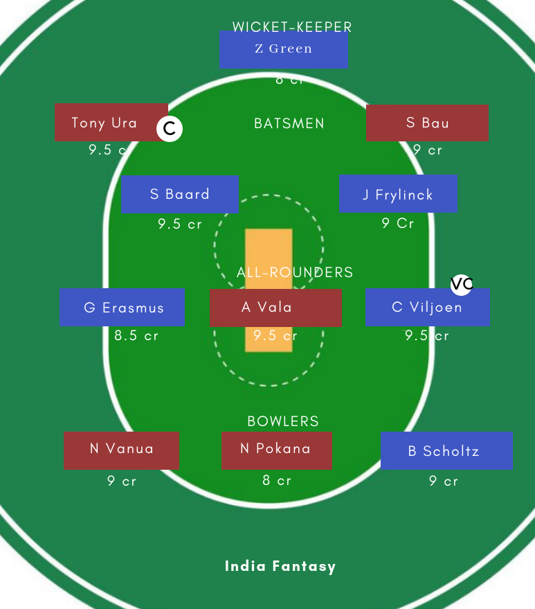 In wicketkeeper, Z Green will be right pick as PNG can rope in any one of K Doriga or S Atai for wicketkeeping.