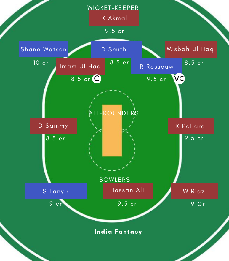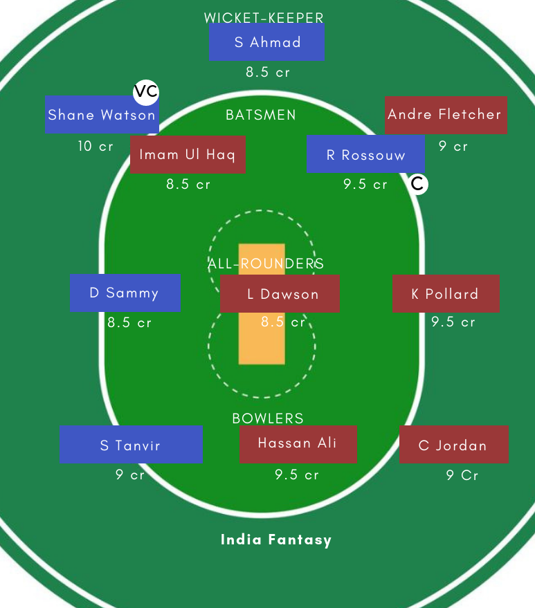Batsmen: Shane Watson, Rilee Rossouw, Ahmed Shehzad, Dwayne Smith