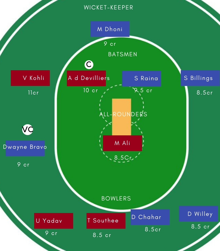ऑलराउंडर – ऑलराउंडर के तौर पर Dwayne Bravo, Moen Ali, Shane Watson, Ravindra Jadeja सबसे अच्छे विकल्प होगें। Bravo बल्ले और गेंद दोनों से कारगार साबित हो सकते है।