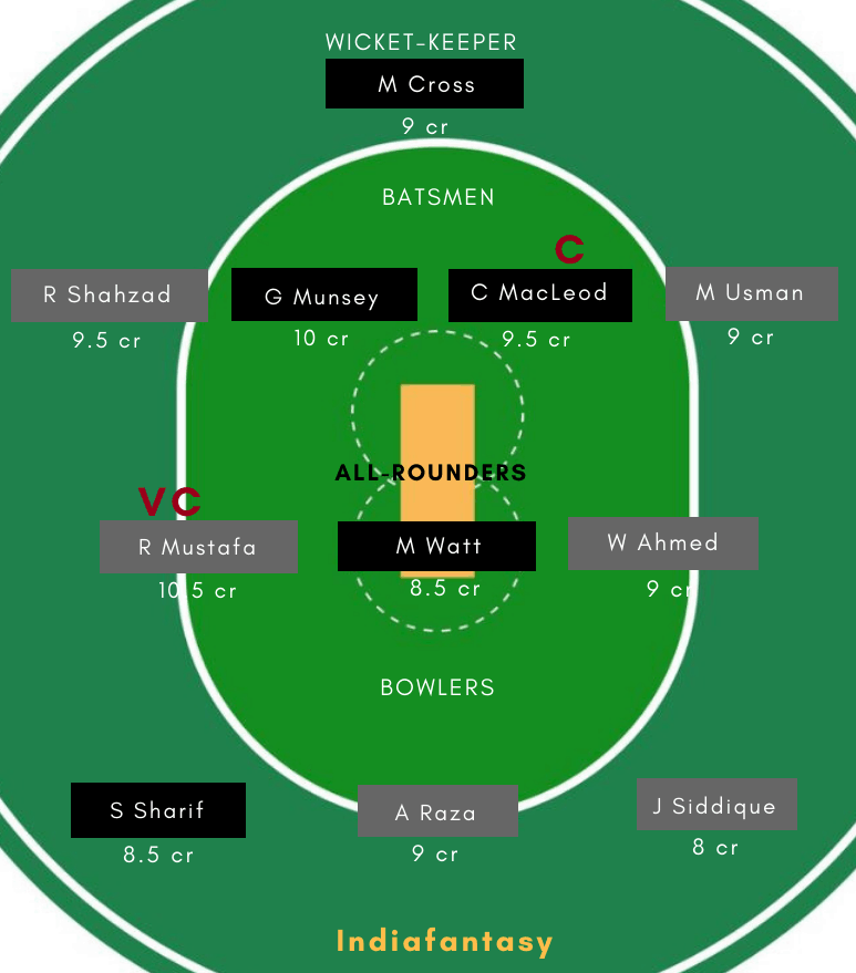 SCO Playing 11- (Expected) Calum MacLeod, George Munsey, Alasdair Evans, Craig Wallace, Michael Leask, Matthew Cross, Josh Davey, Safyaan Sharif, Kyle Coetzer, Richie Berrington/Tom Sole, Mark Watt (Doubt: Ollie Hairs)