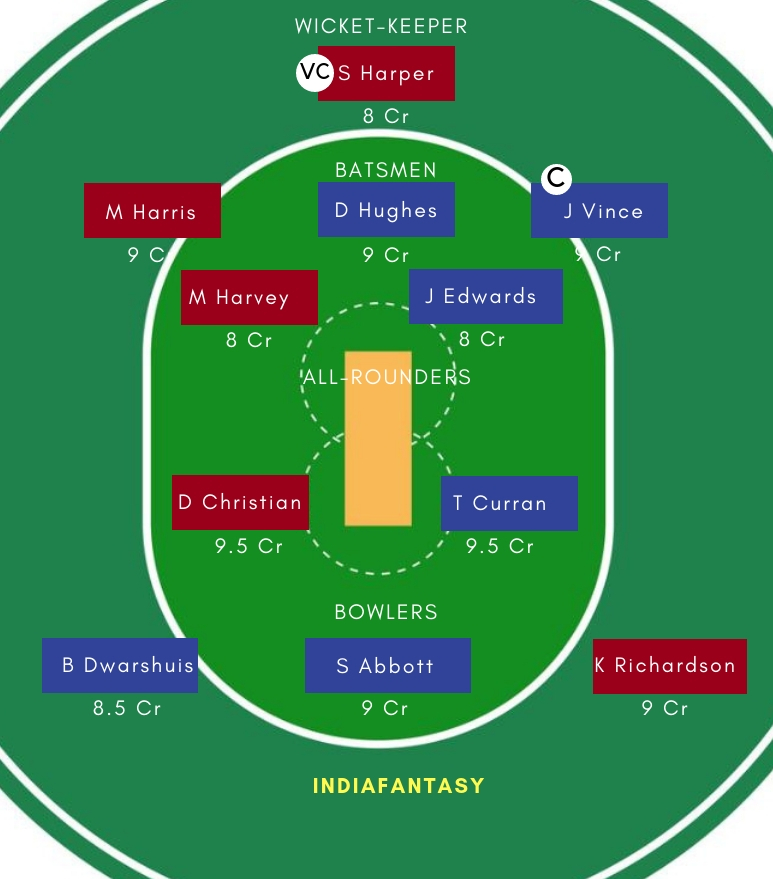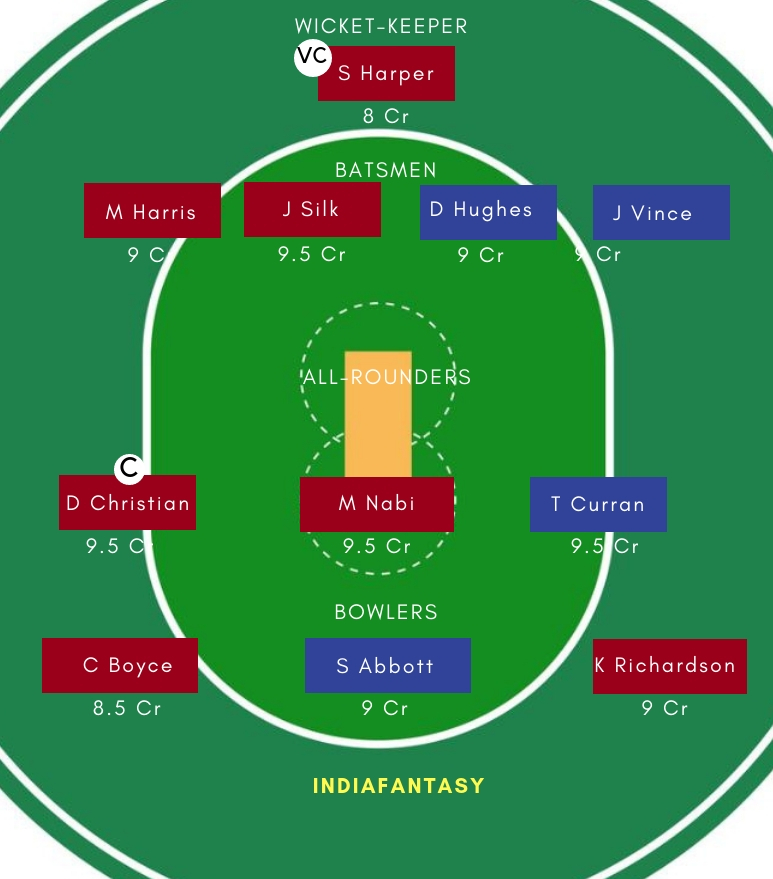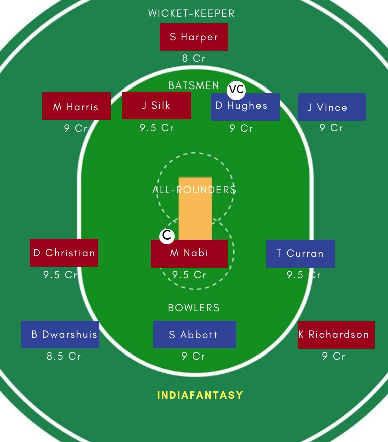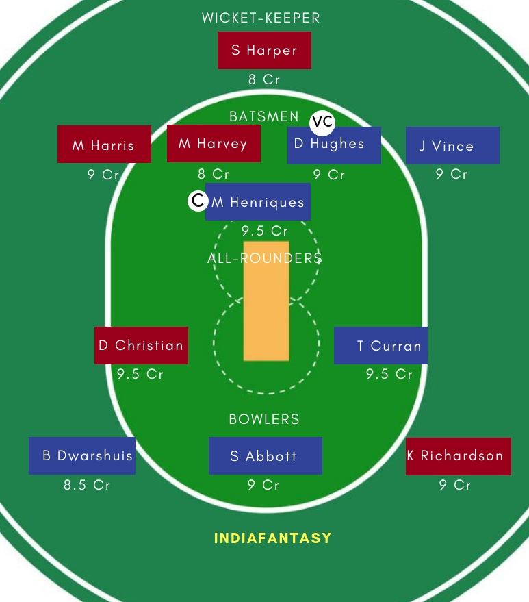 SDS Playing 11: Josh Philippe, Moises Henriques, Jordan Silk, Daniel Hughes, Jack Edwards, James Vince, Tom Curran, Steve OKeefe, Sean Abbott, Ben Dwarshuis, Ben Manenti