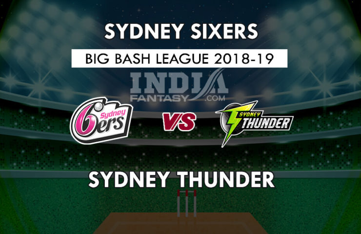 After registering a winning start into the tournament, Sydney Thunder and Sydney Sixers will be looking to carry forward the momentum when both the sides will go head to head in the upcoming fixture of BBL 2018-19. Both the sides will lock horns at Sydney Showground Stadium, Sydney tomorrow and the clash will begin at 01:45 PM IST.