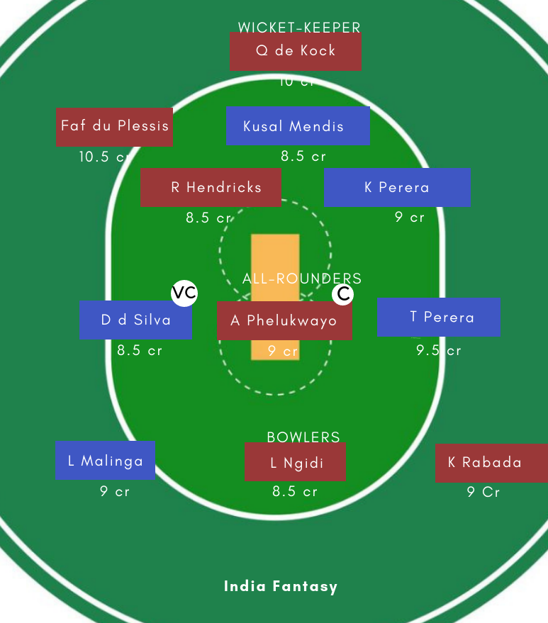 Quinton de Kock will be the best pick in wicketkeeper. With 222 runs in the test series, de Kock was the leading run-getter for the side and is in fluent form