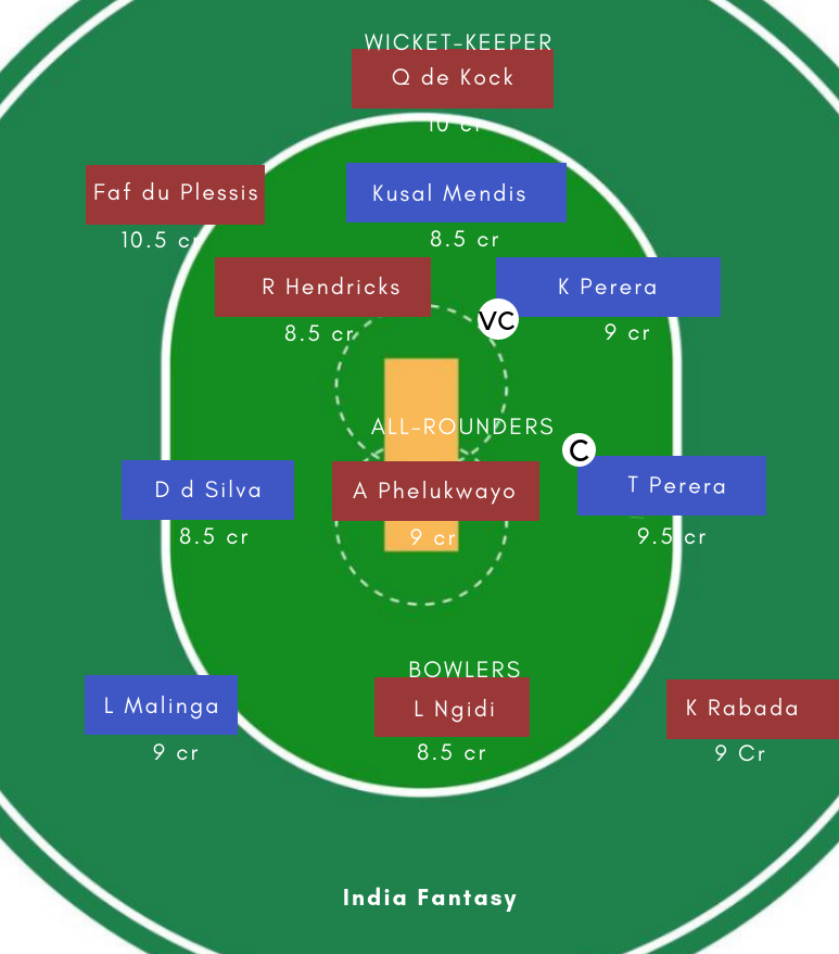 Batsmen: Reeza Hendricks, Faf du Plessis (c), R van der Dussen, David Miller