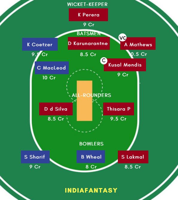 Sri Lanka – Dimuth Karunaratne (c), Lahiru Thirimanne/Avishka Fernando, Kusal Mendis, Kusal Perera (wk), Angelo Mathews, Dhananjaya de Silva, Thisara Perera, Isuru Udana, Suranga Lakmal, Jeffrey Vandersay, Nuwan Pradeep