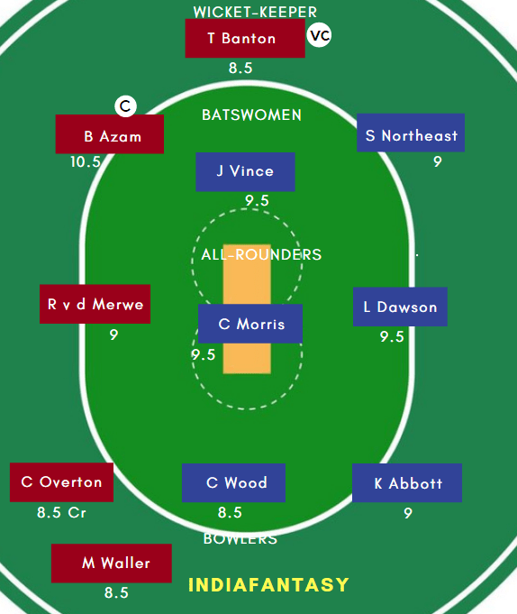 Rilee Rossouw, Liam Dawson, James Vince (c), Chris Wood, Sam Northeast, James Fuller, Chris Morris, Kyle Abbott, Brad Taylor, Aneurin Donald, Lewis McManus (wk)