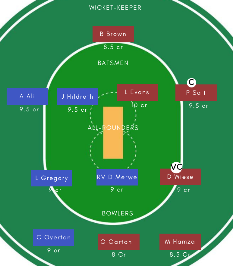 ऑलराउंडर: L Gregory, R Van Der Merwe, C Overton
