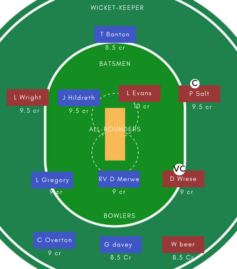 बल्लेबाज: Luke Wright, L Evans, H Finch, P Salt