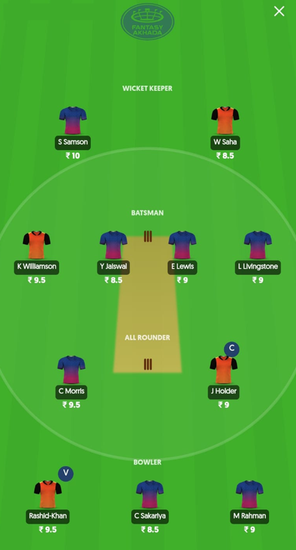 2. J. Holder: Holder has a stunning game against PBKS. He took three wickets and smashed an unbeaten 47 runs but wasn’t enough for SRH to win that game. Overall, he has 61 runs and has picked up 6 wickets in 3 games. We back him to do well in this game