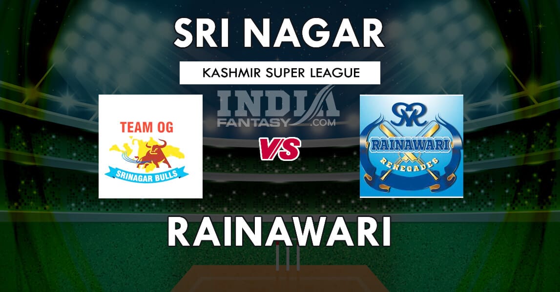 Rainawari Playing 11- (Expected) Aquib Kurpal, Furqan Khan, Imran Malik, Khalid Ahad, Furqan Rasool, Rohit Bhat, Tanvir Malik, Shahbaz Junaid, Mujtaba Sarvar, Nasir Ali, Shafat Reshie/Furqan Khan.