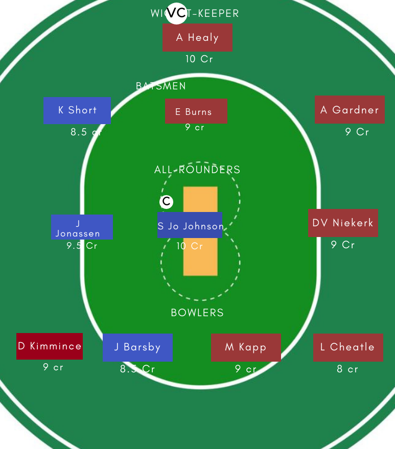 ऑलराउंडर :Grace Harris, Sammy-Jo Johnson, Jess Jonassen